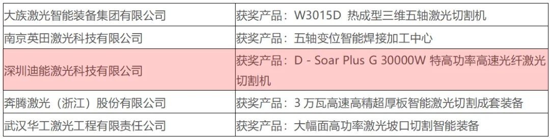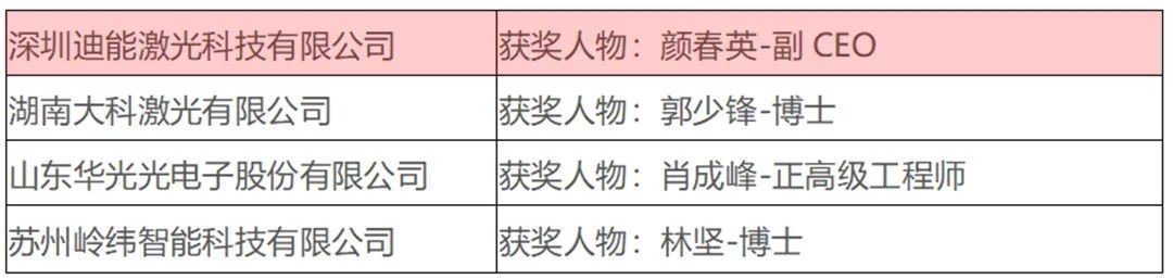 “激光智能裝備技術創新獎”獲獎名單